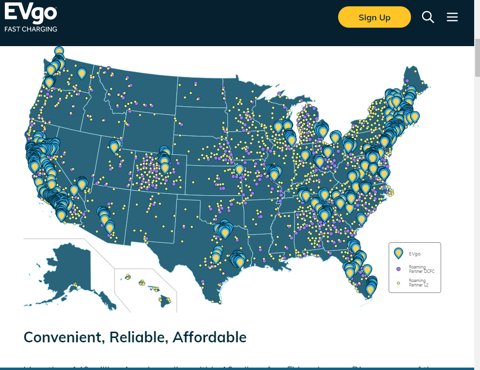 3. EVgo Inc : 2010년 미국 캘리포니아에 설립하여 2022년 8월 기준 850개 이상의 dc 급속 충전기를 보유한 기업입니다. 향후 5년동안 3배 규모로 증가qk할 예정이며 자사에서 개발한 전기차 플랫폼에 가입된 회원이 50만명이라고 발표하였습니다. GM과 파트너쉽을 체곌하였으며 2030년까지 GM의 모든 공장에 충전기를 설치하고 2040년 까지 전세계 GM공장에 전기차 충전기를 설치하기로 밝혔습니다.