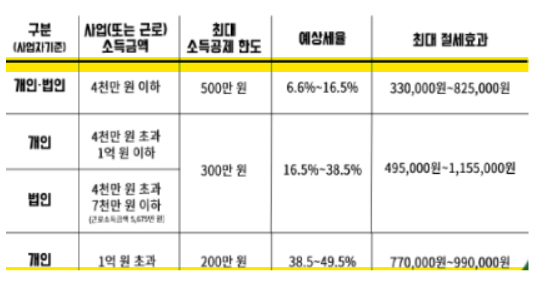 가입 자영업자를 대상으로 연 500만원 한도로 소득공제를 지원합니다만 사업자의 소득에 따라 지원한도가 다르다르니