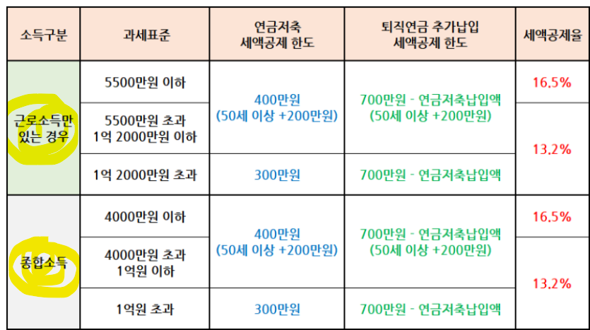 퇴직연금 추가 납입과 합산 매년 700만원까지 세액 공제가 가능합니다.