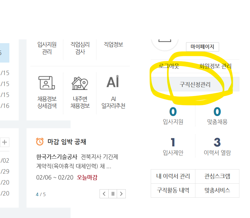 이력서 등록완료를 하신 후 구직신청을 클릭하시구요