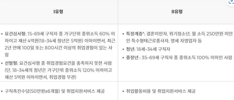 취업을 원하는 사람들에게 서비스를 종합적으로 제공하고, 저소득 구직자에게는 생계를 위한 최소한의 소득ㄷ 지원하는 제도 입니다.