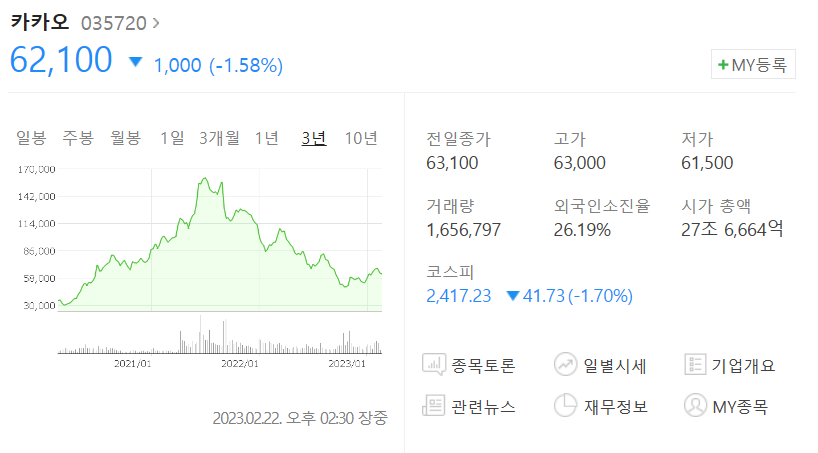 나는 카카오 주식이 없어서 관심있게 보지 않았었는데 이번에 엔터 보면서 한번 보면서 또 공부해보게 되네요.